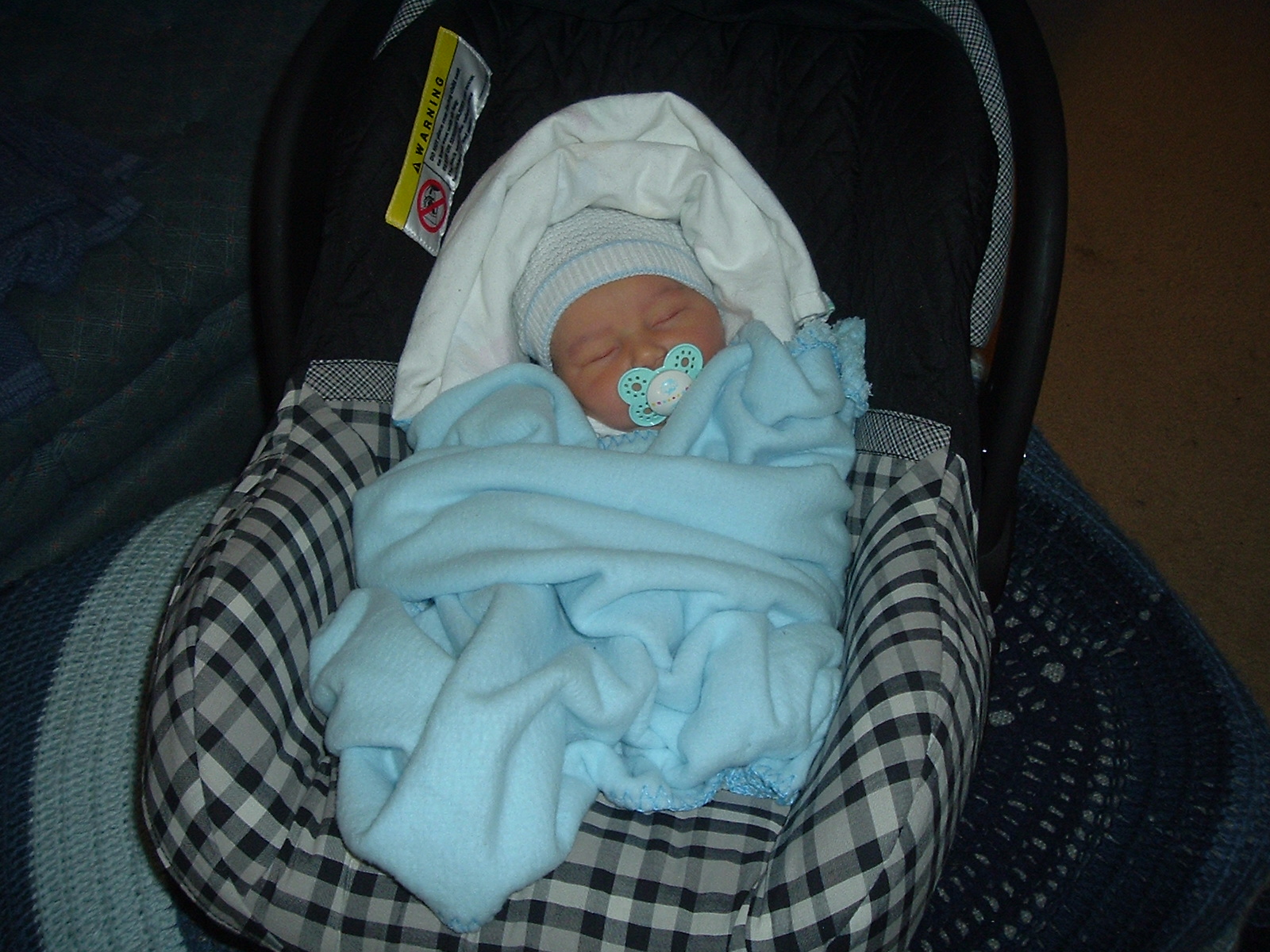 He makes it home safe and sound. He slept the whole way too. Apparently we purchased a comfortable car seat. |