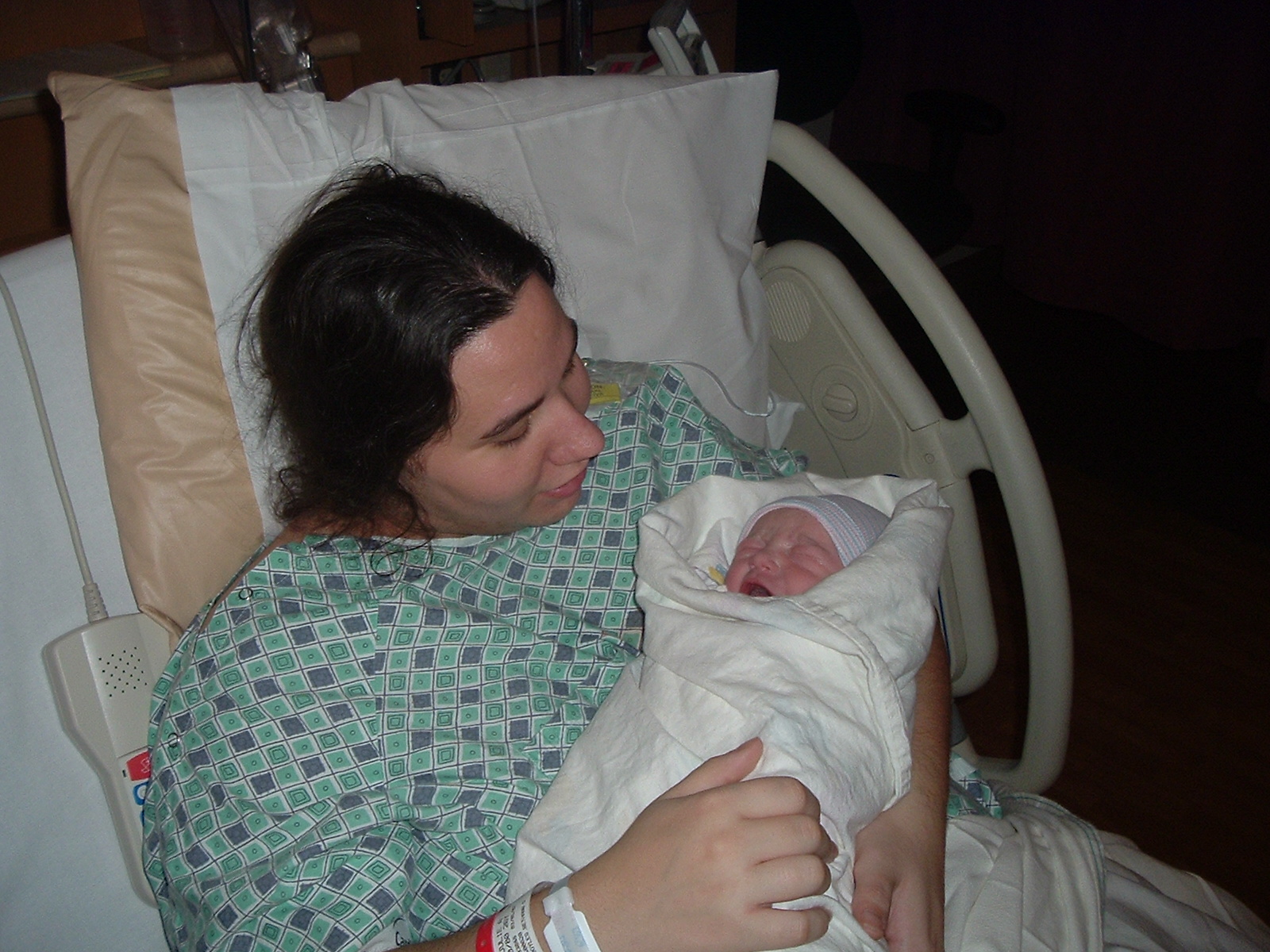 Here Julie holds Warren in the delivery room. Labor lasted 17 hours, but Warren made it all